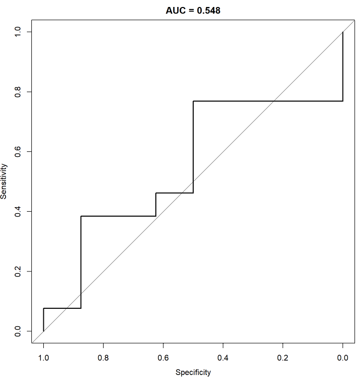 These findings indicate that the biomarker signature demonstrated strong predictive and prognostic utility within the discovery cohort but failed to generalize to the independent validation cohort. The lack of significant survival differences and the reduced model performance highlight potential overfitting, suggesting that the biomarker may not be robust across diverse datasets.